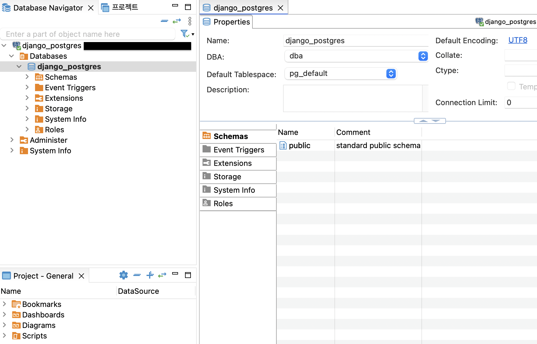 초기 데이터베이스 이름 지정해주기, 따로 지정 안해주면 postgres로 만들어짐