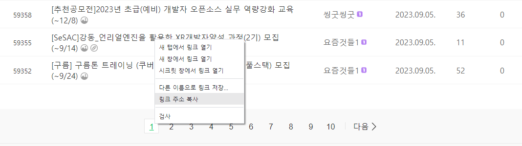 ▪ 크롤링할 카페의 게시판으로 가서 첫번째 페이지의 링크 주소 복사