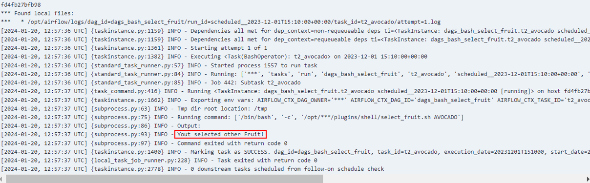 ▪ dag을 unpause시키고, log를 확인해보면 다음과 같이 Shell 파일이 실행됨